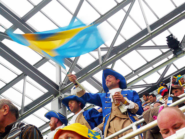 Mit gut einer halben Stunde Verspätung ging’s dann am Irschenberg noch schnell zum Burger King und anschließend mit A.M. Richtung Salzburg. Kurz nach der Grenze konnte man das Stadion auch schon sehen. Da die Sympathien im Auto zu 75% bei den Gelben lagen, fuhren wir zum Parkplatz für die Schweden-Fans. Von dort gab es dann Shuttle-Busse zum Stadion. Das Ganze lief auch alles recht unkompliziert ab.