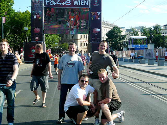 Nach dem ersten EM-Ausflug nach Salzburg, stand letztes Wochenende also der 3-Tages-Trip nach Wien auf dem Programm. Zu fünft (Mair sen. und jr., Meyer Chrissi und die Karlstetters) machten wir uns samstags um 09:27 Uhr im gemeinsamen Zugabteil auf Richtung Vienna.