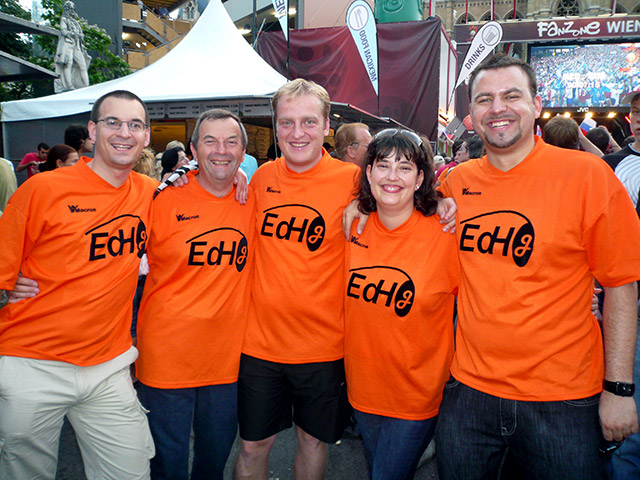 Schnell die Zimmer bezogen und schon ging es auf in die Innenstadt. Am Stephansplatz war schon ordentlich Stimmung, da vereinzelt auch Holländer und Rußen da waren, obwohl das Spiel ja in Basel stattfand. So langsam kamen wir auch ordentlich ins Schwitzen, weil das Wetter entgegen der Vortage schwül und superheiß war. Zum Glück hatten wir Sonnencreme dabei.