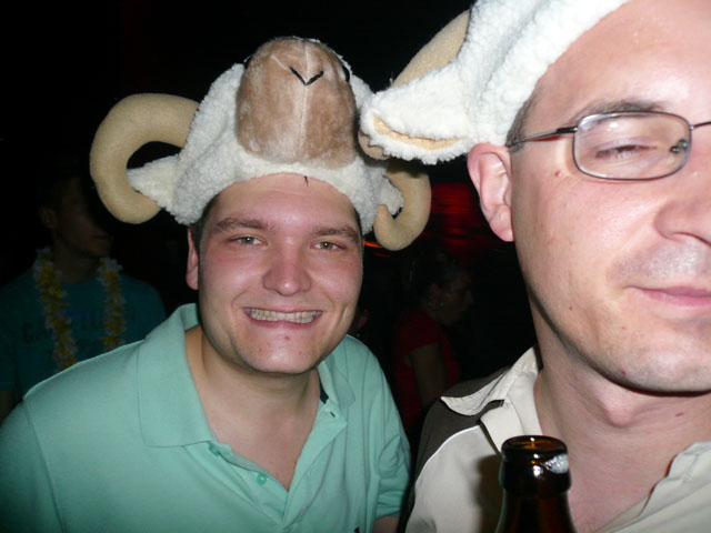Am Samstag war Remmi-DEMMI angesagt, es war nämlich der Junggesellenabschied vom Mr. Demmelbauer. Begonnen hatte der Abend um 20:00 im Kartpalast in der Hansastraße mit Spareribs und einem spannenden Go-Kart-Rennen. Danach kleideten wir uns standesgemäß ein (Müllis geile Idee mit Schaafsmützen 🙂 ) und begaben uns nach Schwabing, wo aber mehr oder weniger tote Hose herrschte.