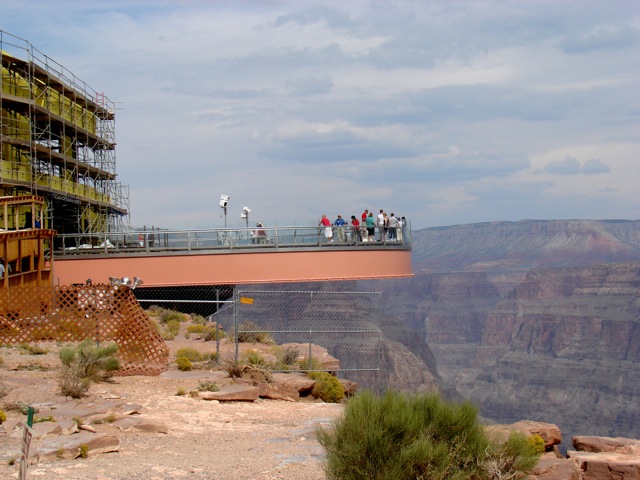 Nun aber zu unserem gestrigen Ausflug zum Grand Canyon Skywalk. Mit unsrem fetten Dodge Durango Jeep fuhren wir knapp 3 Stunden am Hoover Damm vorbei zum Aussichtspunkt, welcher in einem Indianer-Reservat liegt. Zum GlĂŒck hatten wir einen Jeep (wie schon 2004 als Bergpuma), denn die Strecke 30 Meilen davor war gröĂtenteils unbefestigt. (@Schiedi: WĂ€r ein Königreich fĂŒr den Subaro Impreza gewesen).