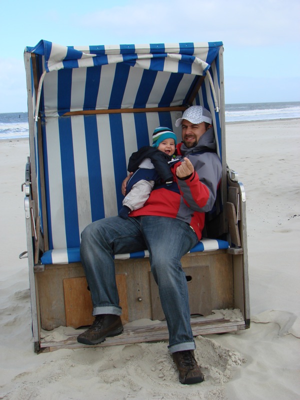 Dienstag ging es für uns schon früh morgens auf die Fähre nach Norderney. Knapp eine Stunde dauerte die Überfahrt auf die benachbarte Insel. Hier schlenderten wir anfangs auch durch die Einkaufsgässchen (die eher auf Rentner abzielen, außer natürlich der übliche „Jack Wolfskin“) und gönnten uns das tägliche Fischbrötchen. Nach der Mittagspause fuhren wir mit dem Bus zum Leuchtturm. Ein näheres Betrachten wurde uns aber verwährt, da wir den vollen Eintritt hätten zahlen müssen, obwohl wir mit Kinderwagen ja ganz einfach die 255 Treppen auf den Turm genommen hätten. Alternativwege waren auch nicht möglich, da das Gebiet um den Leuchtturm großräumig abgezäunt ist. War uns aber egal, wir gingen halt stattdessen Richtung FKK-Strand. 😉