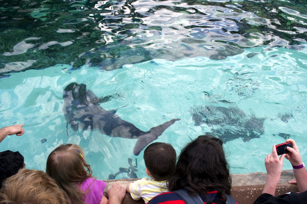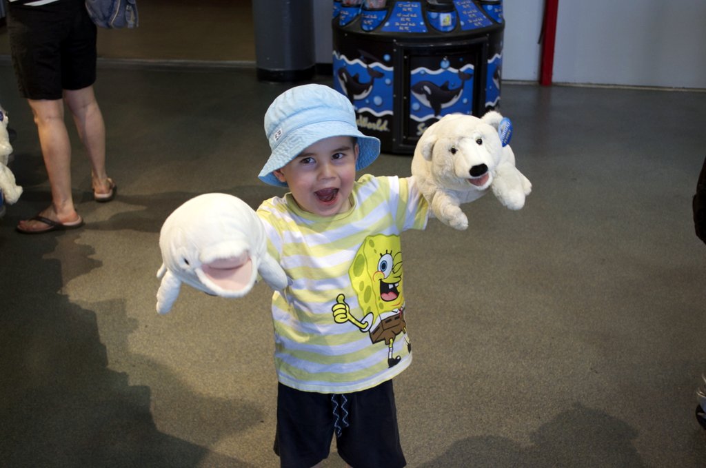 Einen Tag später ging es gleich weiter ins Sea World, von dem ich erst dachte, es wäre ein riesiger Zoo für Meerestiere. Jedoch war es mehr ein Freizeitpark mit Fahrgeschäften, Shows und ein paar Tieren. Der Amerikaner braucht halt sein Entertainment, nur Zoo allein ist wohl zu fad. Da uns die Achterbahnen eher weniger interessierten, konzentrierten wir uns auf die Shows, von denen wir uns drei (Orcas, Delphine und Seerobben) in verschiedenen Stadien anschauten. Um einen halbwegs guten Platz zu bekommen, musste man meistens schon 30 Min. vorher da sein. Das Warten hatte sich dann aber stets gelohnt. Ansonsten gab es noch das ein oder andere Aquarium zu bestaunen. Jonas faszinierten aber am meisten die Delphine, die man hautnah am Becken bestaunen und auch berühren konnte (wenn man lange Arme hätte). Auch dieser Park war seine Reise wert, mit dem Disney Park konnte er aber (bei fast gleichem Preis) nicht mithalten.