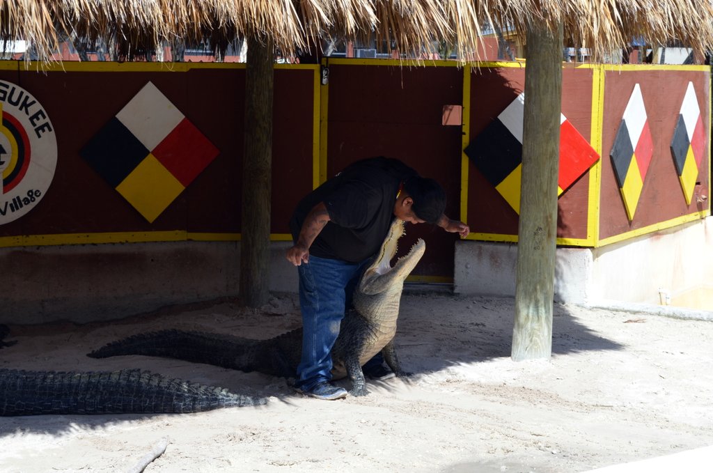 Aber erst einmal genug von Heimreisegedanken, eine kurze Zusammenfassung unserer letzten Tage darf natürlich nicht fehlen. Den letzten Bericht hatte ich ja auf der Autofahrt Richtung Key West geschrieben, dabei haben wir auch in den Everglades einen Zwischenstopp eingelegt. Genauer gesagt statteten wir dem Indianer-Dorf der Miccosukee einen Besuch ab. Dort konnten wir uns über die Lebensgewohnheiten der Einwohner ein Bild machen und auch eine kleine Alligator-Show und verschiedene Tiere bestaunen.