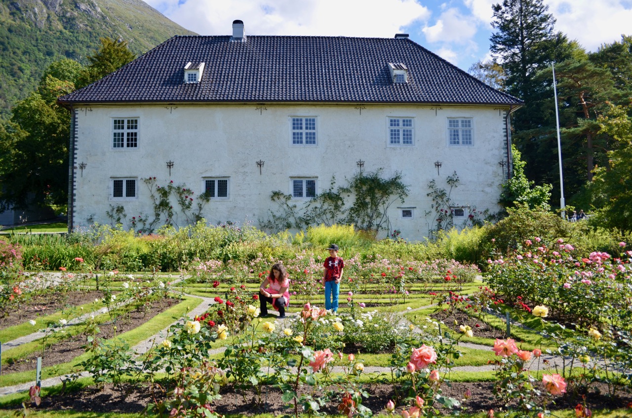 Nach dem vollgepackten „Karlstetter-Tag“ gab es für uns müde Entdecker noch ein paar Burritos im Taco-Laden und die Tram ins Hotel. Da die Fahrt Richtung Stavanger verhältnismäßig länger dauern würde und zudem die ein oder andere Fährenüberfahrt anstehen würde, starteten wir am nächsten Tag gleich nach dem Frühstück. Zur Mittagszeit legten wir auf halber Strecke noch einen Zwischenstopp bei der Baronie Rosendal ein, einem kleinen Schlößchen mit wunderschönen Gärten. Speziell die unzähligen Rosenarten, gefielen Bettina besonders.