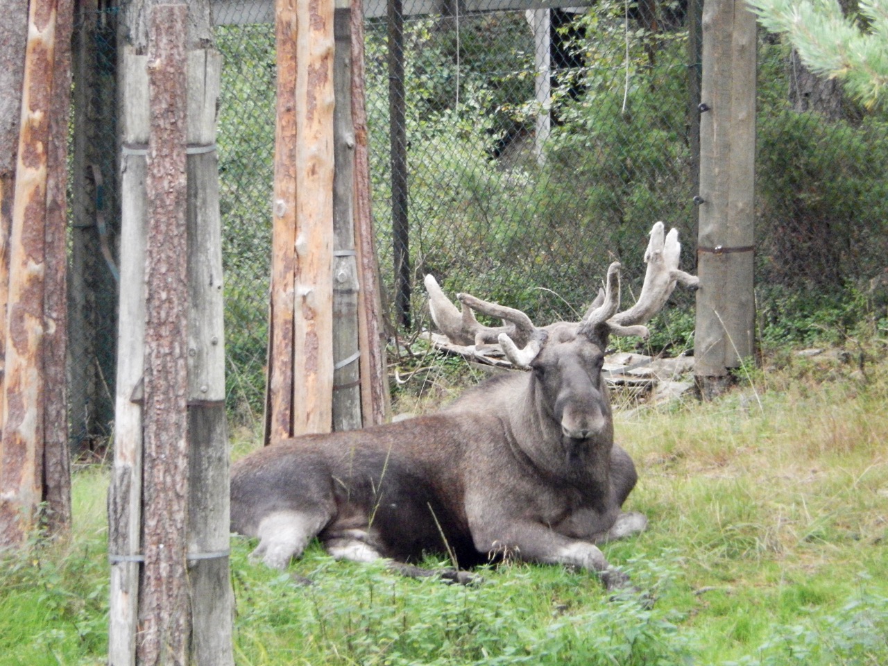 Hauptgrund für den Halt in Kristiansand bzw. Lillesand, war für uns aber der Besuch des örtlichen Tierparks (Dyrenpark) mit angeschlossenem Freizeitpark, der uns von unseren Freunden und auch dem Reiseführer empfohlen wurde. Um es vorweg zu nehmen, für uns war es leider mehr oder weniger ein Reinfall. Wie wir erst im Park und nach der Zahlung von knapp 80 EUR feststellen durften, war bereits Anfang August die Hauptsaison im Park vorbei und alle Fahrgeschäfte, Verkaufsbuden und die Kapitän Säbelzahn-Show waren geschlossen. Sprich wir hatten einen „stinknormalen“ Zoo, mit ein paar Tieren. Diese waren dann auch der einzige Lichtblick, speziell die regionalen Tiere wie der Elch, Luxe oder der Vielfraß konnten ein wenig entschädigen. Ach ja, die Öffnungszeiten waren sage und schreibe von 10:00 bis 15:00 h! Leicht angefressen ging ich beim Verlassen des Parks nochmal an die Kasse um eine Erklärung für diese Situation zu erhalten. Dort wurde mir mitgeteilt, dass die 80 EUR ja schon der günstigste Tarif gewesen wäre und zur Hauptsaison der Preis doppelt so hoch ist. Da musste auch ich erst einmal schlucken. Preis-Leistung leider mehr als mangelhaft. Um wieder gute Laune zu bekommen, fuhren wir anschließend noch ins Zentrum von Kristiansand, dass sich mit vielen modernen Gebäuden und einem kleinen Sandstrand von seiner schönen Seite zeigte und den Tag somit noch positiv enden ließ.